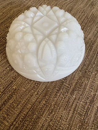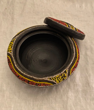 Vintage wooden beaded trinket bowl with lid 6”x3”