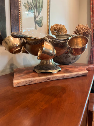 Antique, Brass Punch Bowl Set with Eight Mugs and Ladle