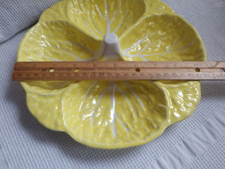 Vntg. Secia Portugal Majolica Yellow Cabbage Divided Dish MCM