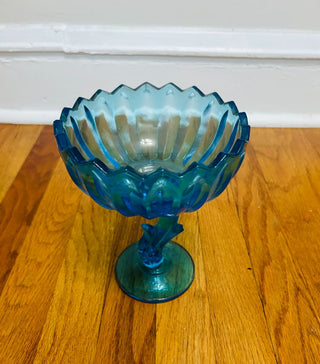Indiana Glass Aqua Blue Tulip Footed Bowl 7.5" X 6"