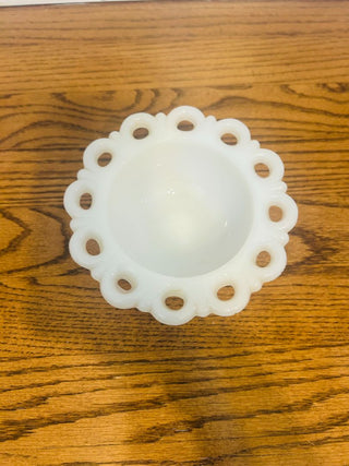 Vintage Milk Glass Open Work Lace Compote Footed Bowl 3.3" X 7"