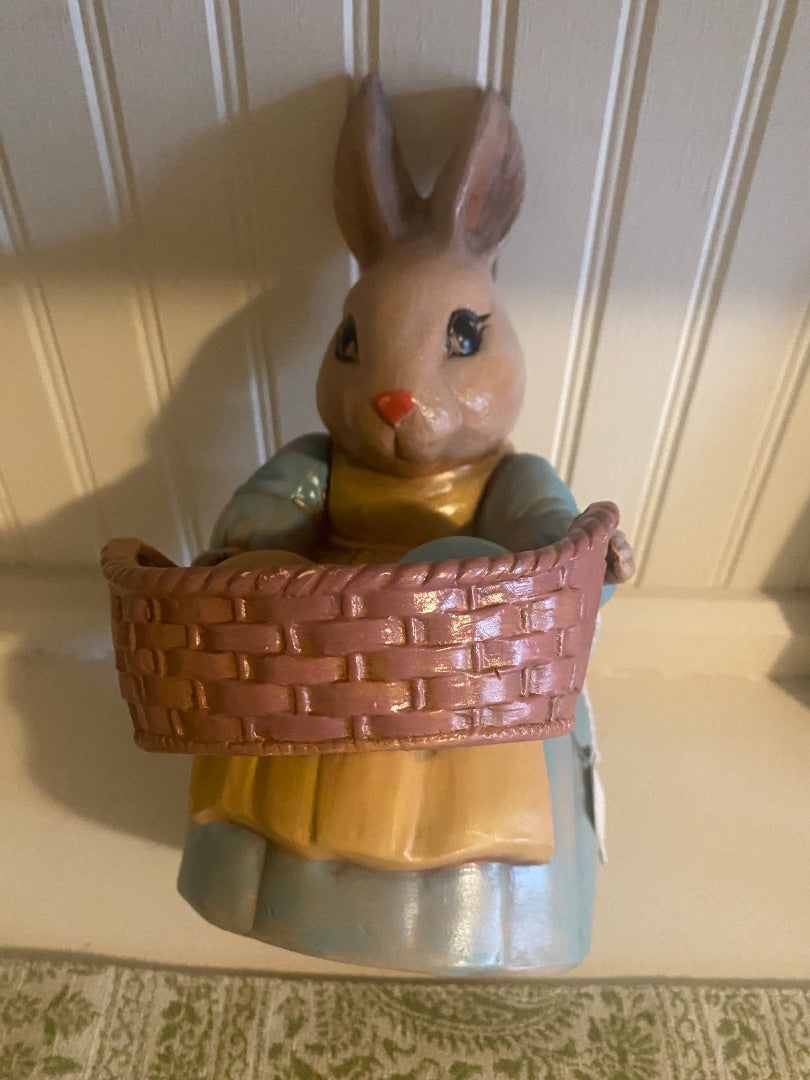 Bunny Holding Basket w\ two Eggs-Ceramic-ty
