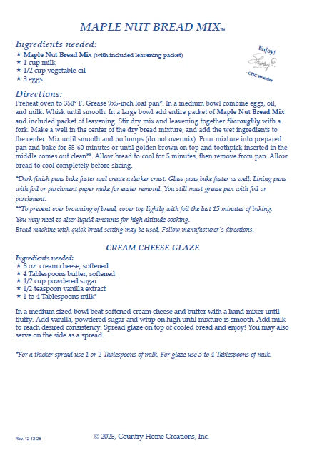 • Indulge in a slice of homemade heaven with our Maple Nut Bread Mix. Whether you're hosting a brunch, packing a lunchbox, or simply craving a sweet treat, this bread is sure to delight.