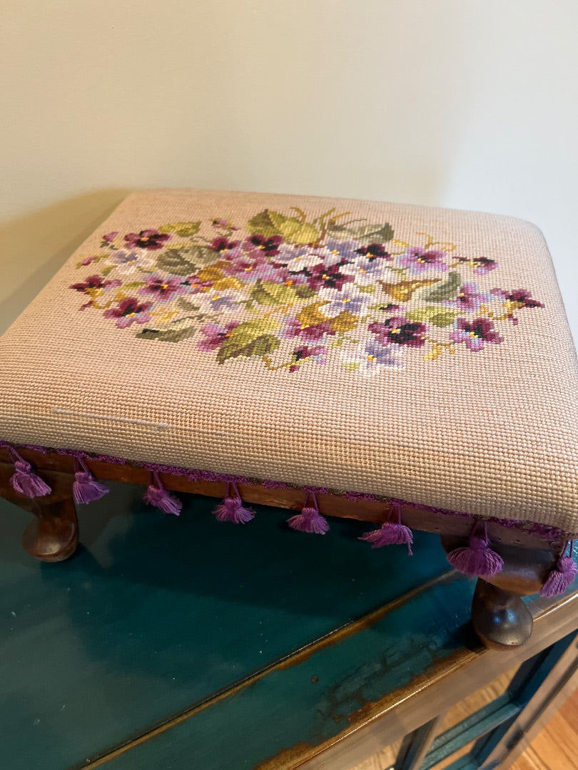 Embroidered Foot Stool with Pansies