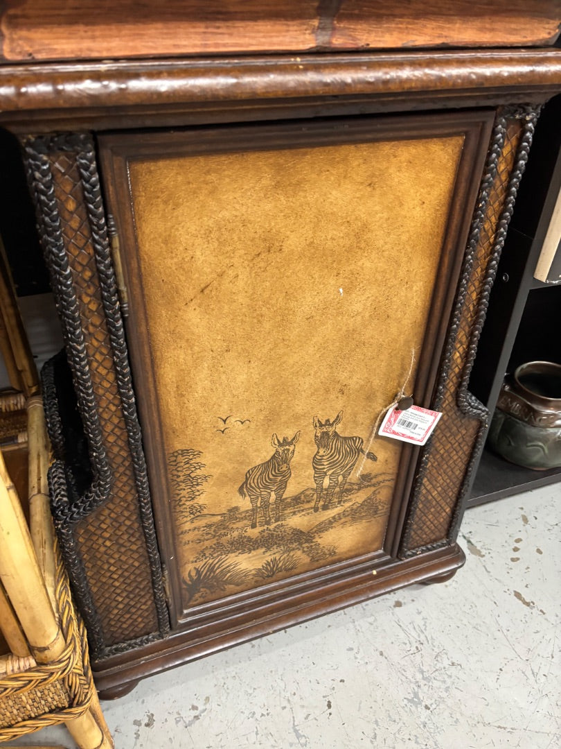Zebra Rattan End Table with Storage and Side Magazine Holders