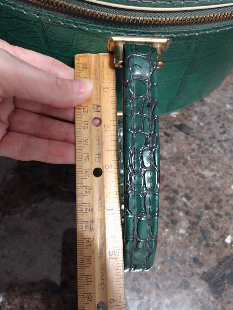 Vintage Green Tailored Light Luggage Round Hat Box Style Suitcase Zip