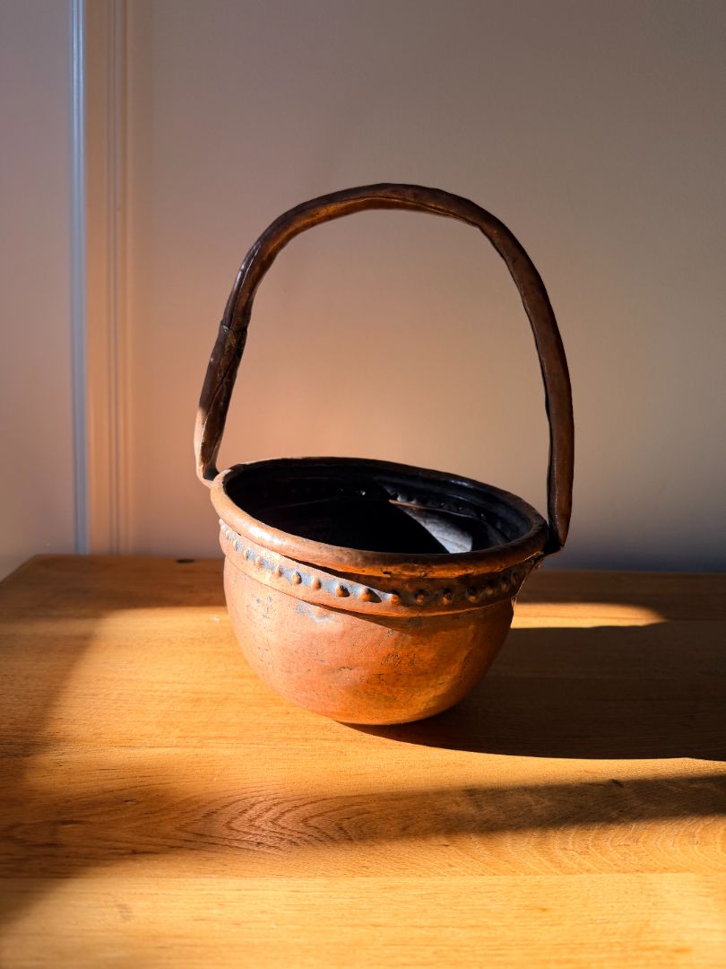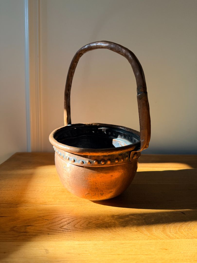 Antique Copper Pot w/ Handle & Decorative Rim
