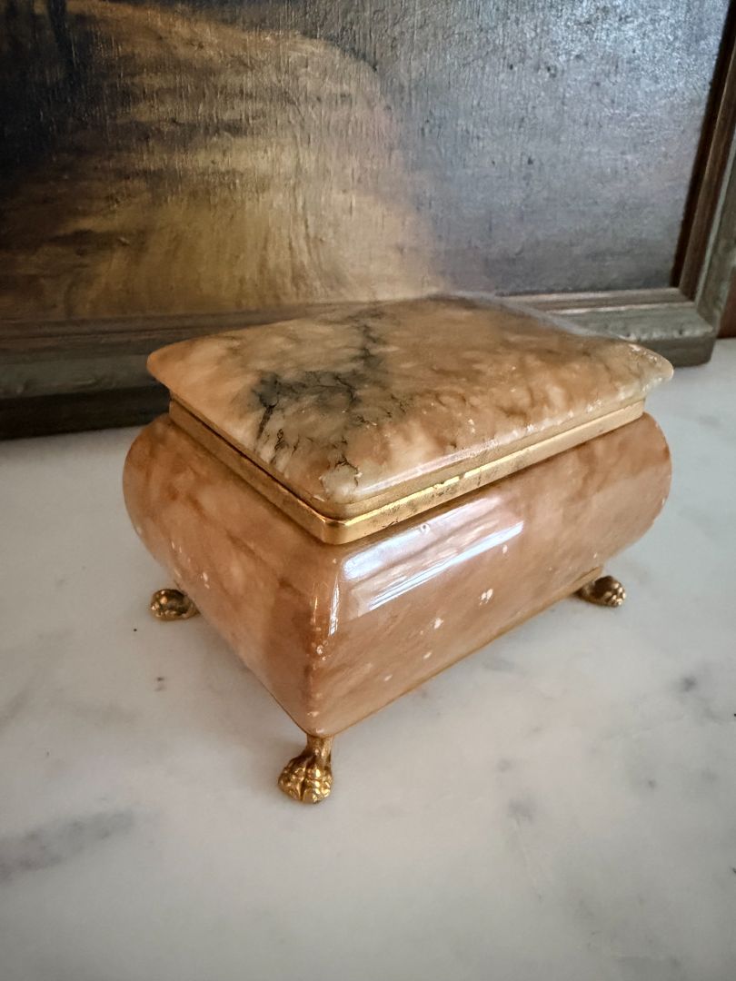 Art Nouveau Hinged Marble Trinket Box w/ Paw Feet