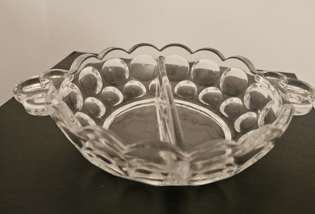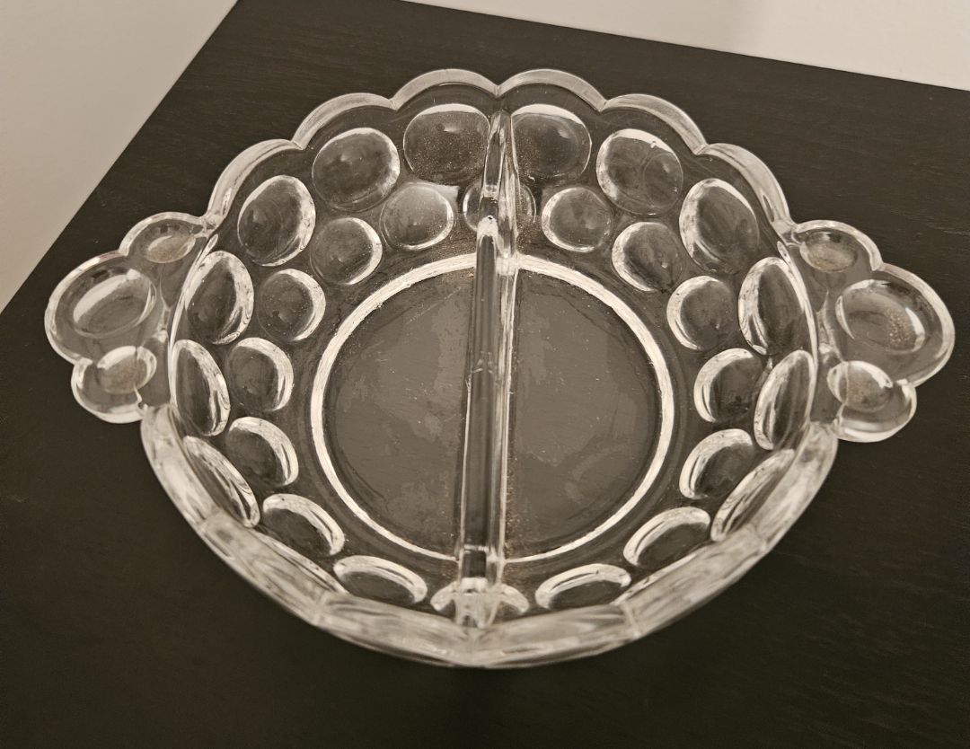Divided relish dish with "bubble" pattern.