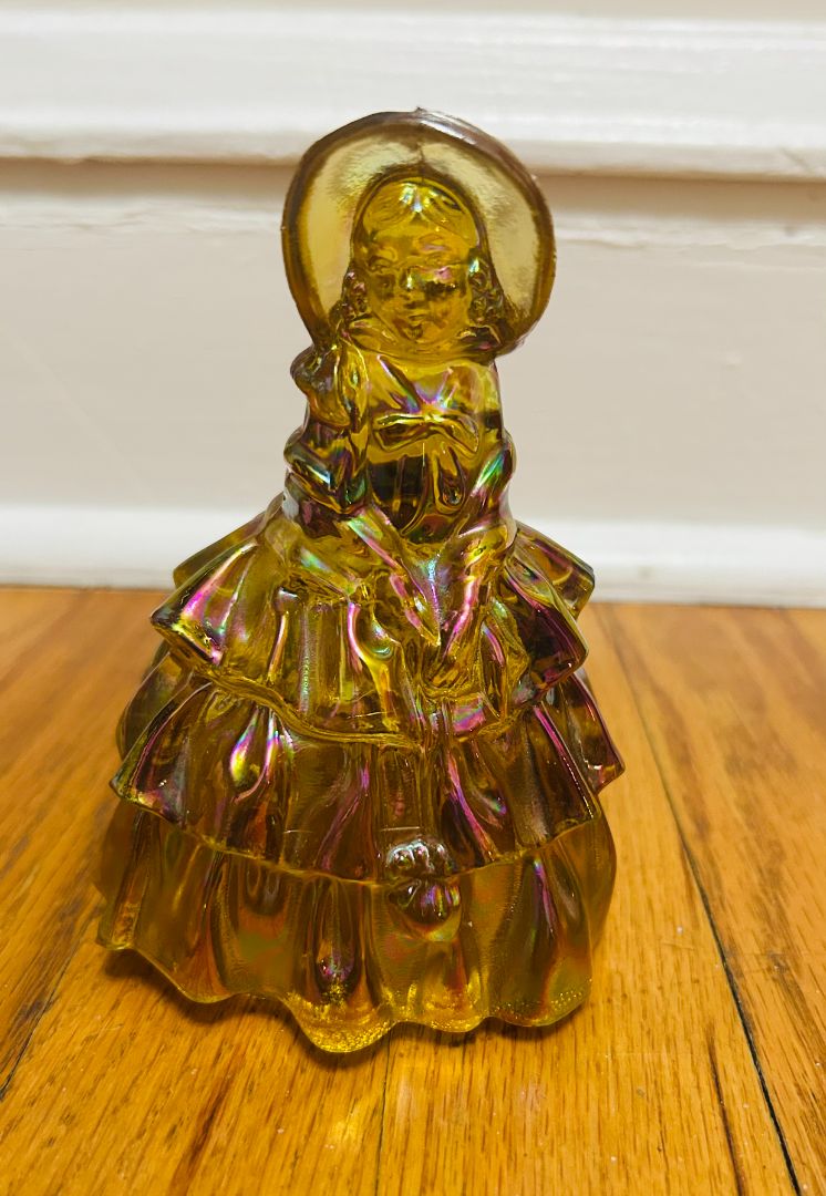 Marigold Carnival Glass Southern Belle lady figurine