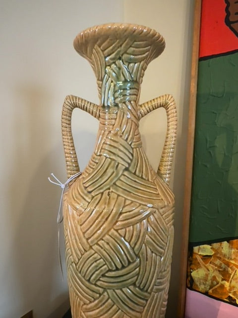 • Mcm,textured weave/braided/glazed design vase with handles. Stamped on the bottom