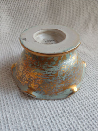 Vtg Stangl Ceramic Candle Holders Seafoam And Gold #5069