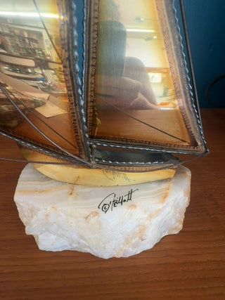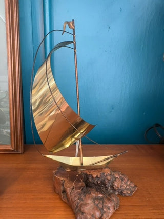 Vintage Demott sailboat brass and copper sculpture set on stone