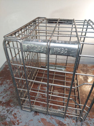 1988 Metal Dairy Milk Crate - industrial farmhouse rustic storage shelf