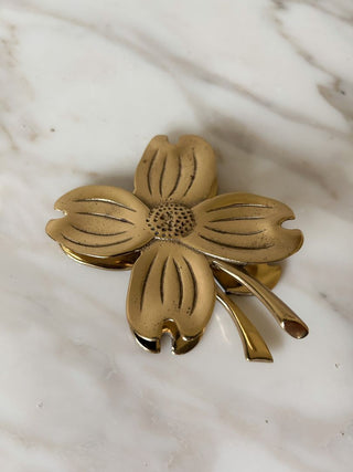 Vintage, brass Mcm sculpture of dolphin with ball.