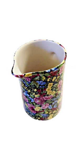 Floral Meadow Water Pitcher, Black Chintz by Crown B Burslem Staffordshire England, vintage pottery