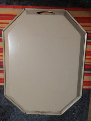 Vintage Large Tole Ware Tray Tan Metal Floral Flowers Hand Painted 20"x15"
