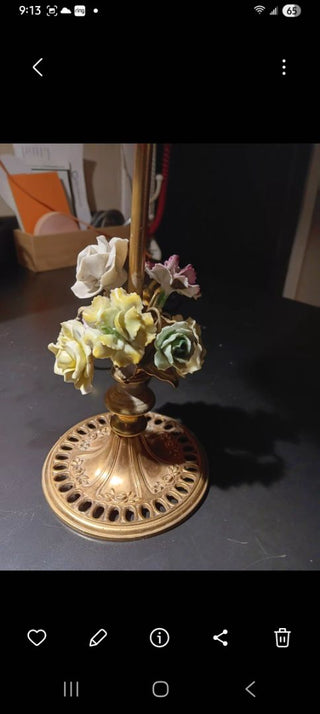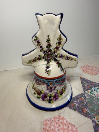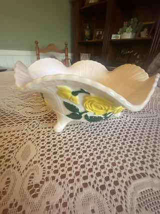 Vtg Footed Ceramic Bowl with Yellow Rose Details and Ruffled Rim