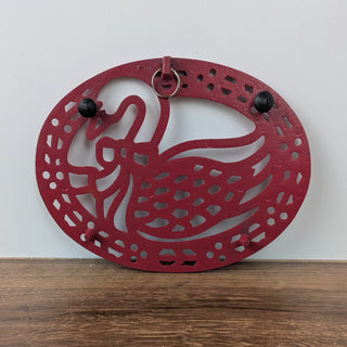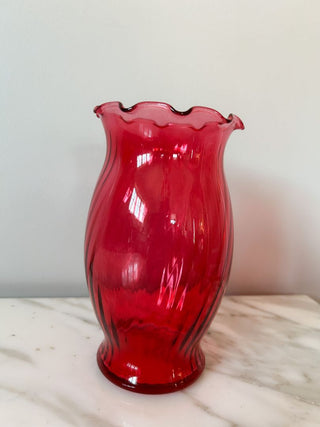 6.5"H Cranberry Glass Vase w/ Swirl Pattern & Crimped Edge
