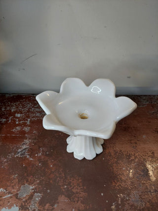 Lotus Milk Glass Candlestick and Pedestal Candle Holder by Westmoreland (T&M)