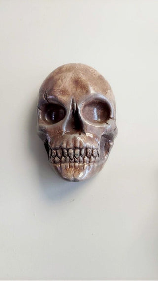 Artist Original - large human half skull wall mount life size plaster Sculpted, glow in the dark UV blacklight reactive(FIRM)