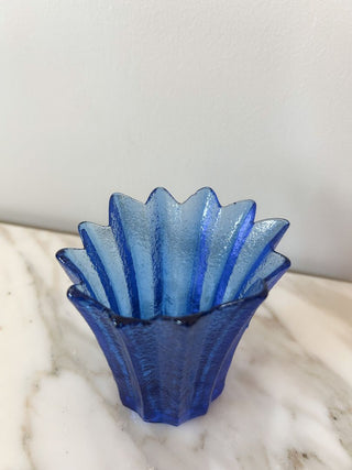 3.5"Wx3.75"H Cobalt Blue Textured Glass Candle Holder