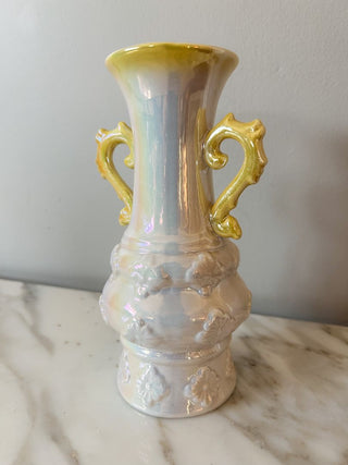 7.25"H Iridescent Lusterware Vase w/ Floral Details
