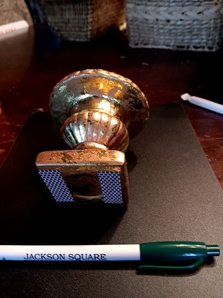 Early American Pressed Glass - Emerald Green Glass Bowl with Gold Accents