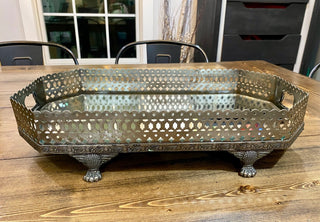 Vintage Middle Eastern etched metal dish 9.5"x9.5"