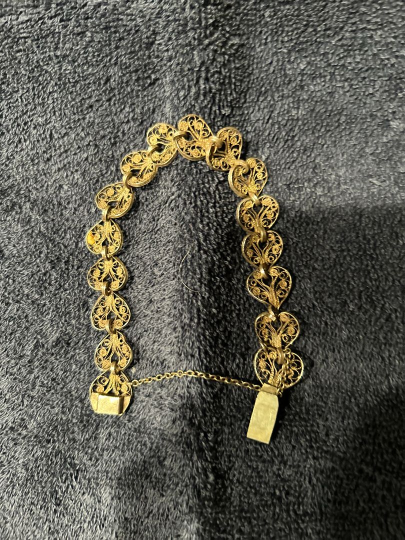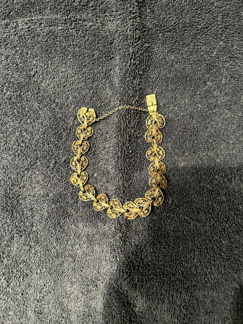 Vintage Filigree Sterling Silver Heart Bracelet w/Leaf Design