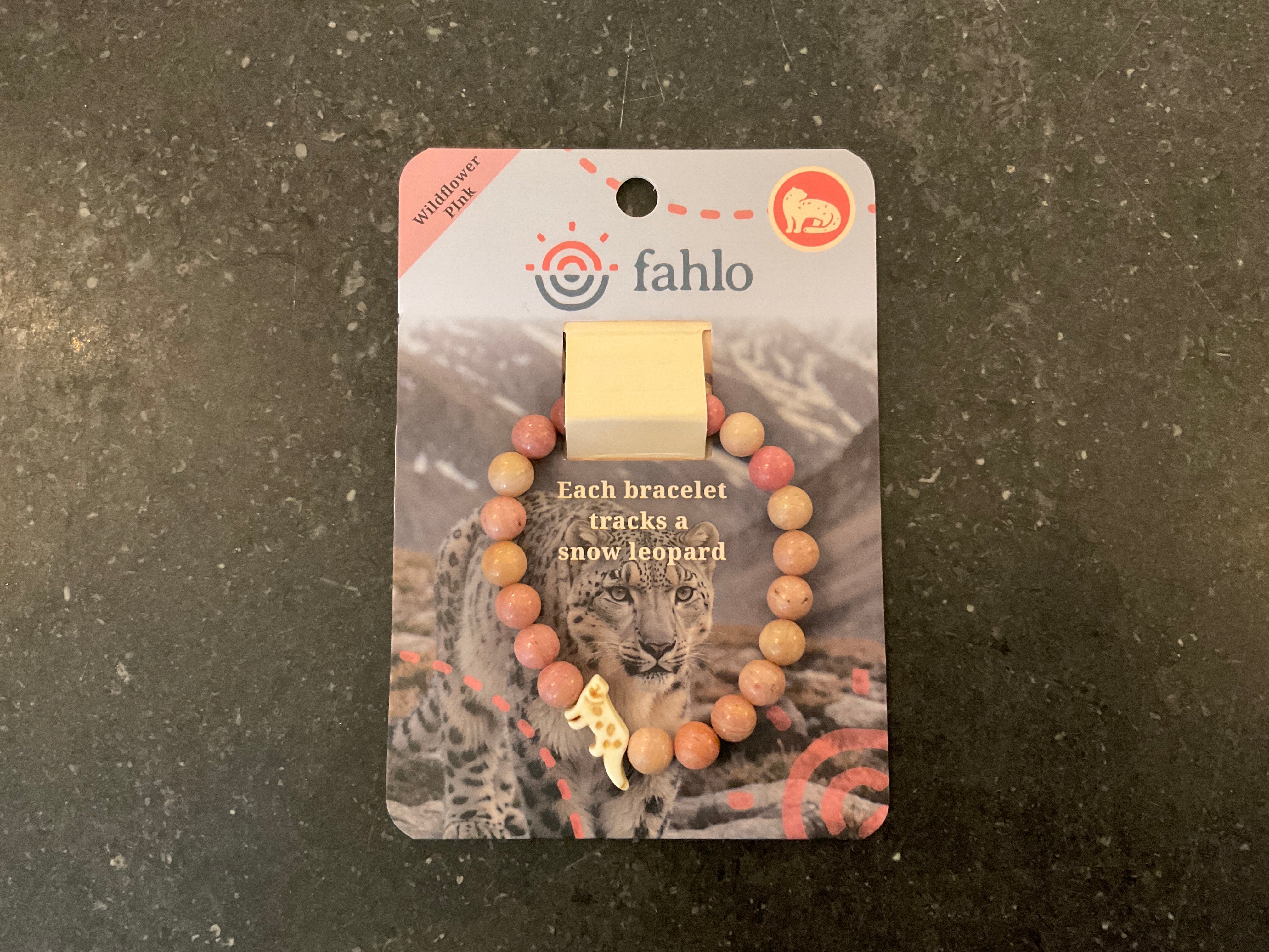 • Track a real animal and support their conservation in the wild! Each Fahlo® Ascent Bracelet reveals a snow leopard’s interactive tracking map on your phone or tablet, along with their name, photo, story, and fun updates along the way. When you track, we give back—in partnership with Snow Leopard Conservancy and their work protecting snow leopards in the mountains of Central and South Asia. * Fahlo® donates 10% of profits to our nonprofit partners * Sizing: elastic, one size fits most * Handmade and one of a kind * Made with natural crushed stone or glass Every Fahlo® tracking experience includes the Fahlo Protection Ping™. This indicates each animal’s unique path may be live, delayed, or historical based on required safety protocol in accordance with our nonprofit partners. While the experience of following an animal’s journey remains the same for you, we work behind the scenes with our partners to ensure it is presented in a way that keeps the animals safe, one step or splash at a time.