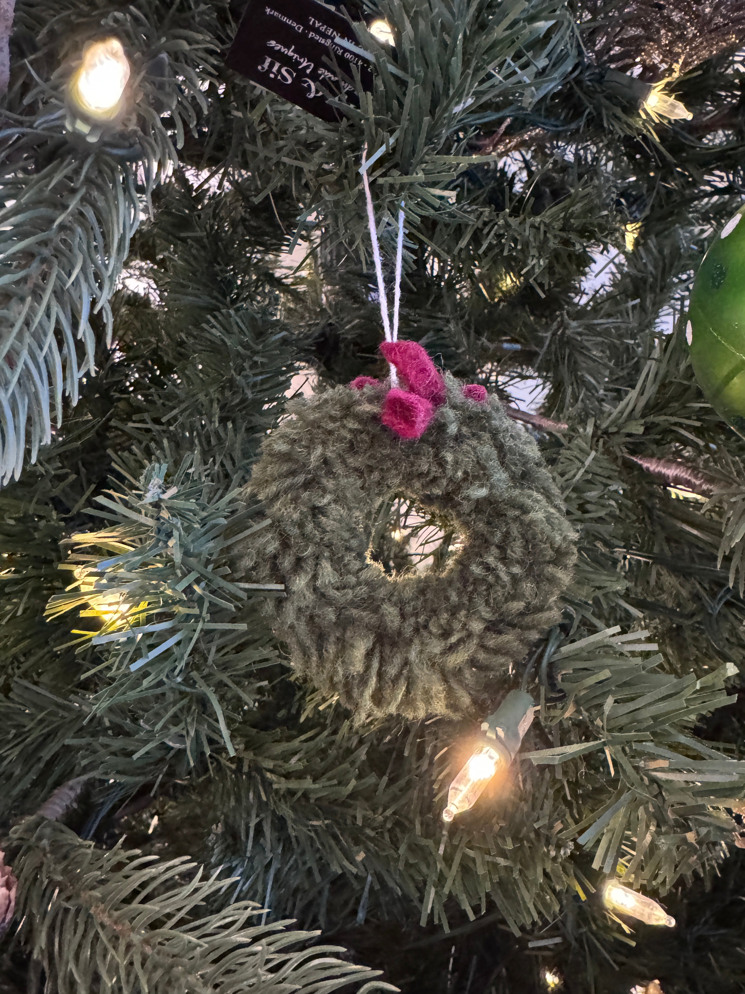 Mini Wreath w/Red Bow Felt Ornament