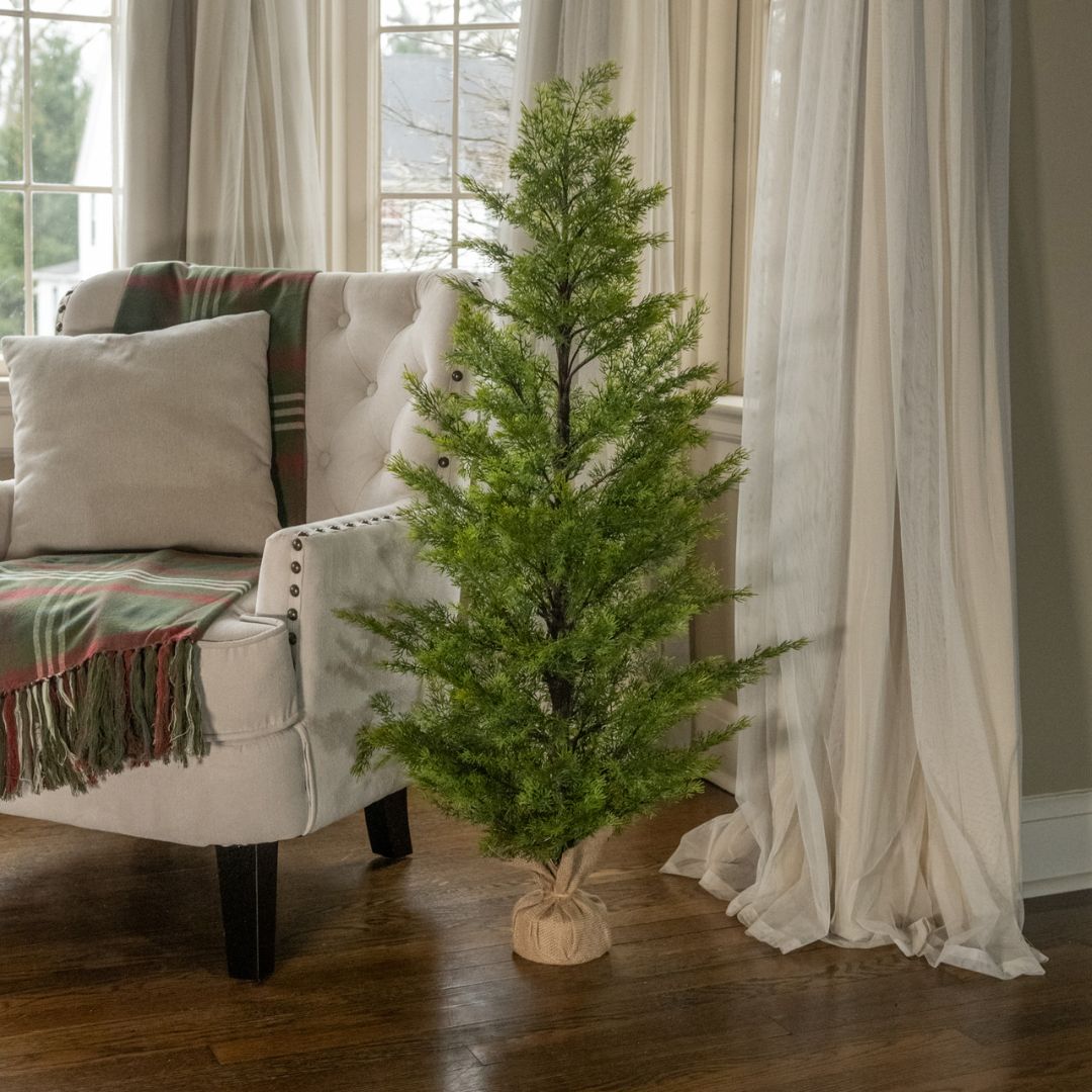 Bring a touch of timeless greenery to your home with this 46" Faux Cedar Tree with Burlap Wrap — a beautiful way to enjoy the charm of nature all year long. 🌿