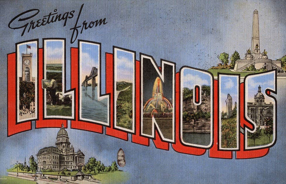 Show off your state pride with this Illinois Sticker featuring vintage lettering. Inspired by retro postcard art, this 3" x 2" die-cut decal is a fun and nostalgic way to celebrate the Land of Lincoln.