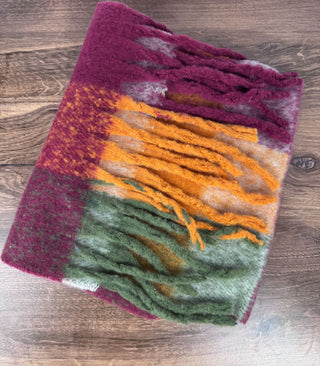 Orange & Burgundy Super Soft Plaid Scarf with Fringe - 72" x 14"