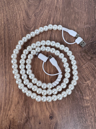 Faux Pearl Phone Charger – Chic & Versatile - With USB-C and Lightening Connector