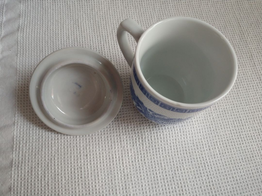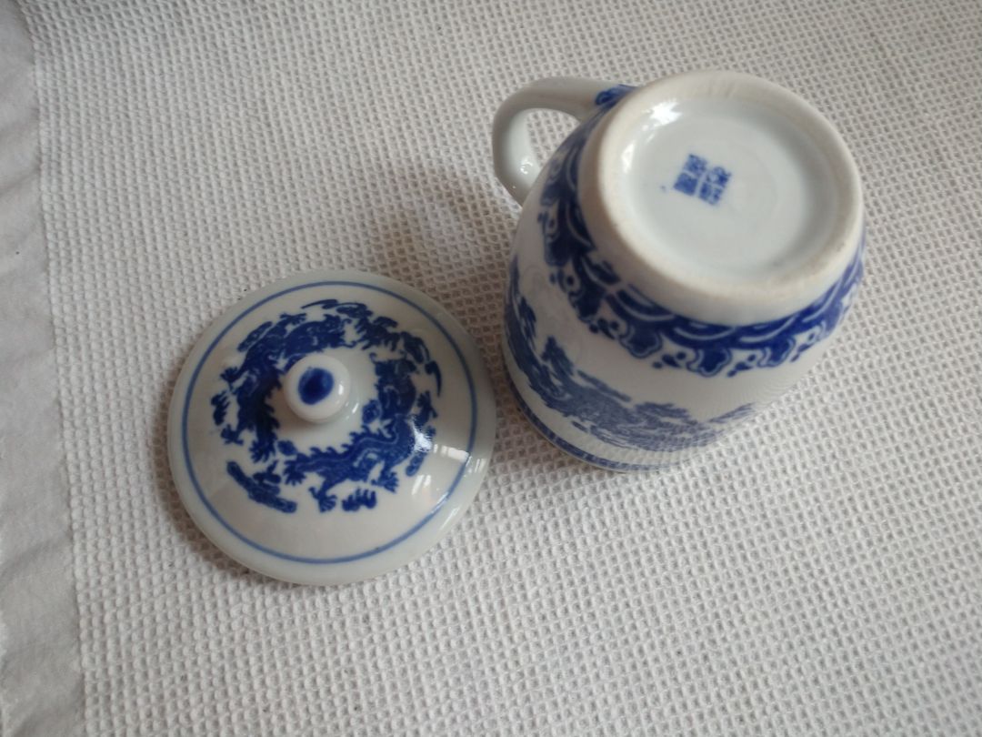 Vintage Chinese Jingdezhen Zhi Blue & White Dragon Lidded Porcelain Mug