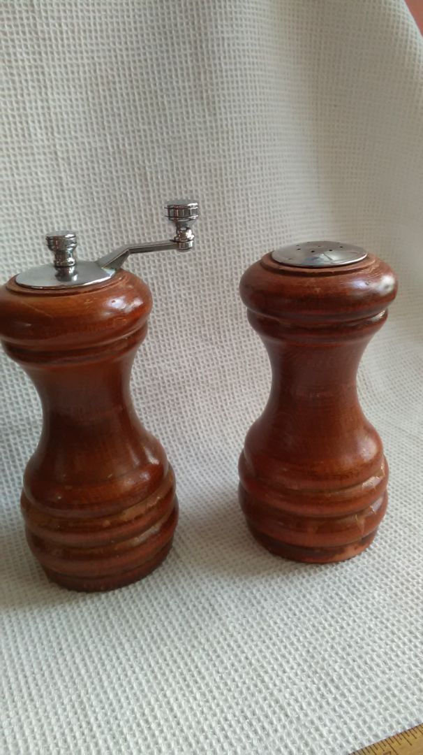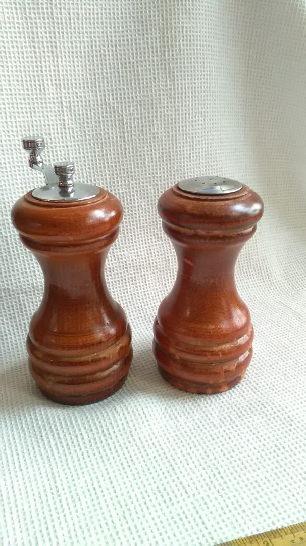 Vintage Wooden Salt & Pepper Shaker Grinder Grinder 6" Tall Heavy Farmhouse