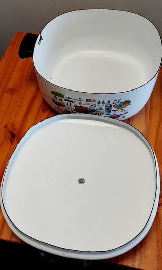 MCM atomic - FIESTA Gourmet wear Dutch Oven by The Homer Laughlin - Folk Art Enamelware Lidded Pot AS-IS
