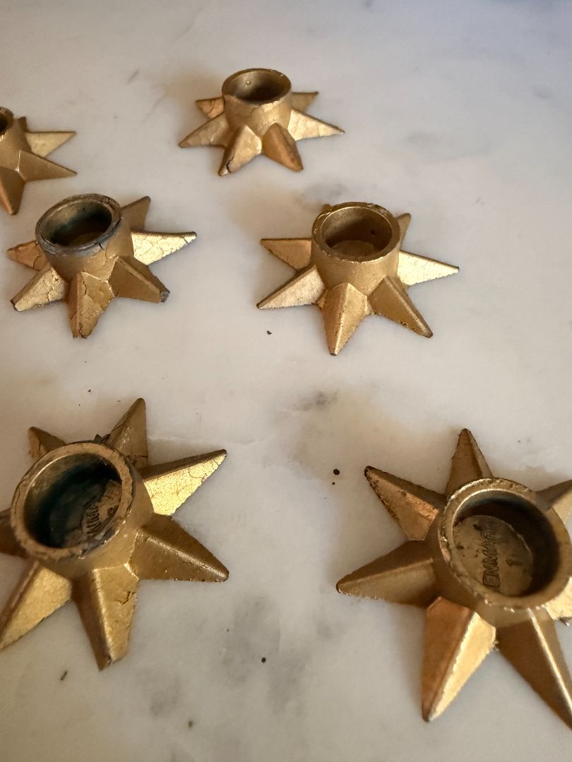 Set of 10 Danish MCM Starburst Metal Mini Taper Candle Holders