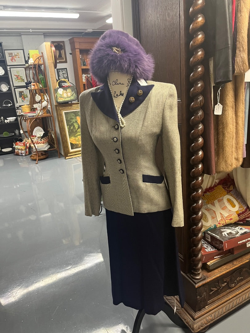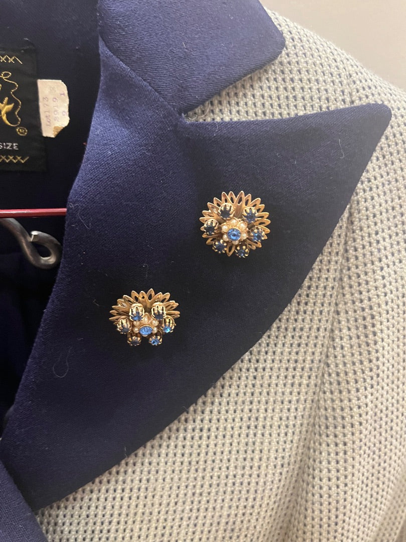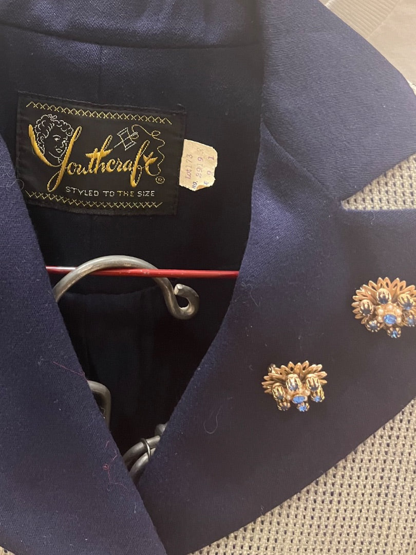 VTG Youthcraft Navy Plaid Jacket + 2 Lapel Brooches