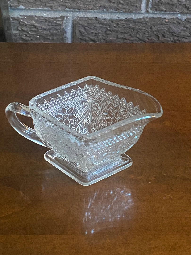 Vtg Indian Glass Tiara Diamond Cream and Sugar Set