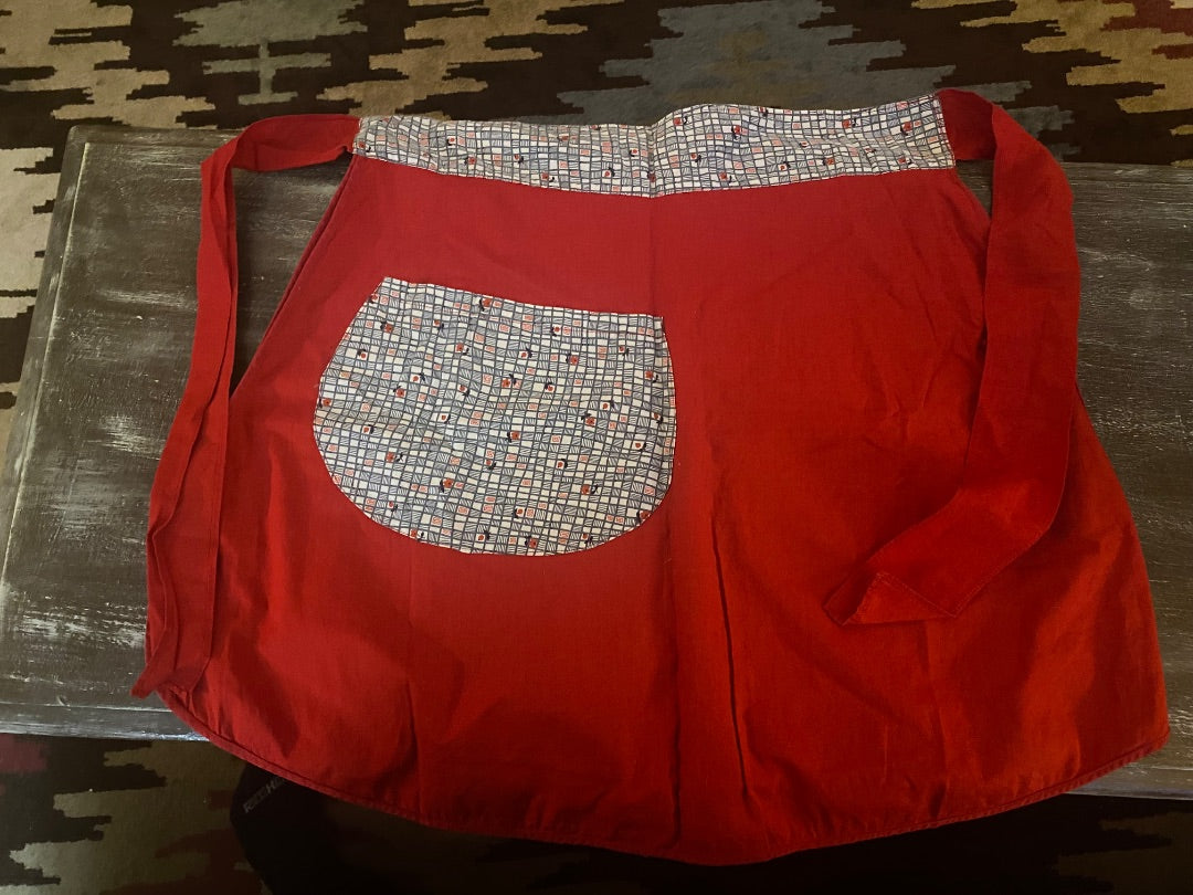Vtg Reversible Red Half Apron-w\Pockets-ty