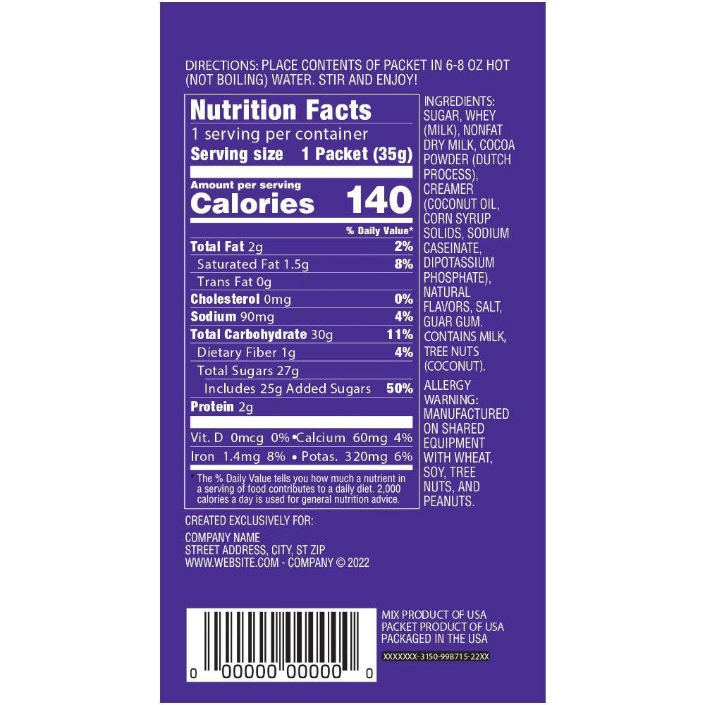 Single-serve packet that makes one perfect mug of gourmet hot cocoa