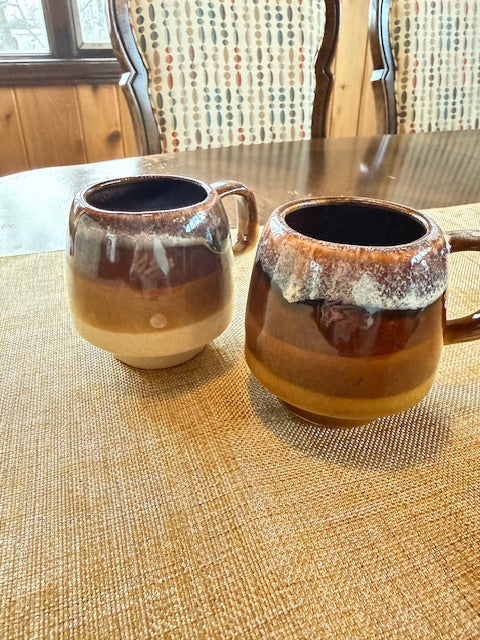 Vintage Brown Drip Ceramic Mugs 2 in set
