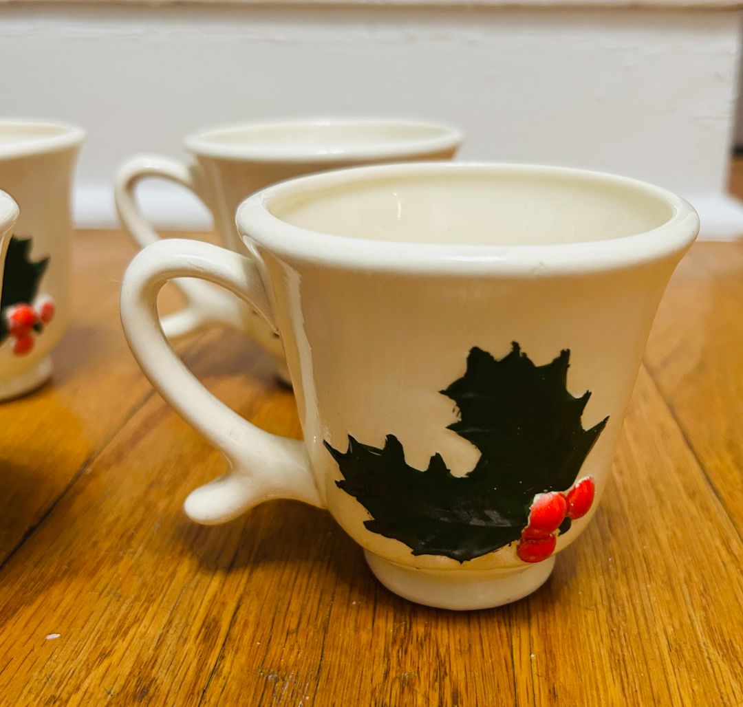 Vintage Holly Berry Ceramic Mugs (set of 4)