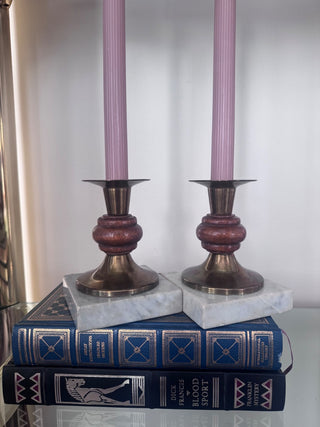 Vintage, Mcm brass,wood, marble candle holders ( set of 2)