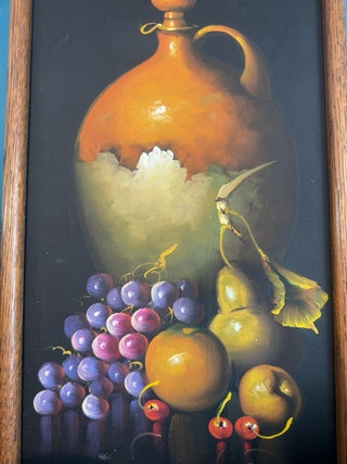 Vintage, original oil on canvas still life by the noted artist, likely with a signature of J. Remstedt