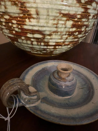 Vintage, art studio pottery oil lamp/ candle holder/vase