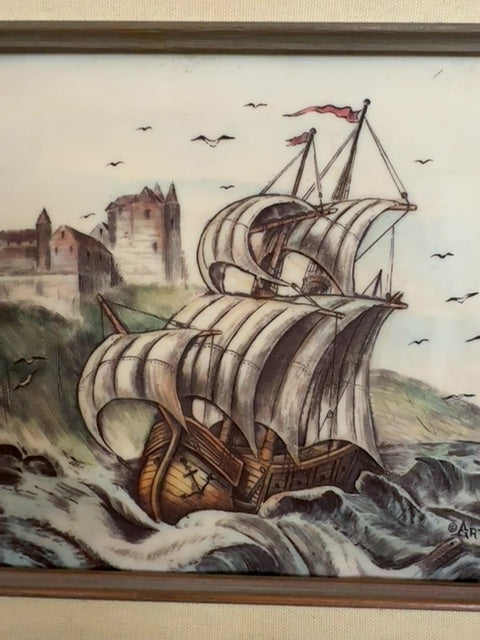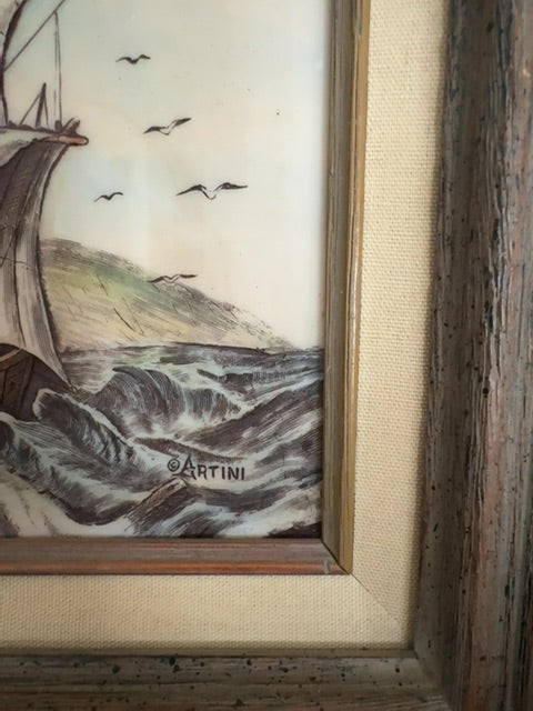 Vintage, ship and sea orginal sculpture wall art by Artini. Signed on the front and stamped on the back